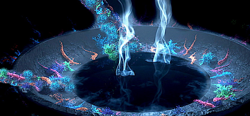 In a large, bowl-shaped floored room, they find colorful coral has collected at the bottom of black-colored bowl. Two shafts or growths of coral have snaked up and out of the bowl into rounded tunnels in the north and west walls of the room. At the bottom of the bowl, they see that there is a 10’-diameter pool of blackness, which a bit of colder air seems to rise out of. They also detect some dark gray swirls. Experiments upon and Detect Magic spell, cast 50’ away from the coral and then brought into the area show the 10’ circle of blackness to be some type of Conjuration magic. The darkness is not wet, cannot be collected, and things pass through it without effort and come back unchanged Eventually, the monk tied to a rope, climbs down the coral and squeezes through the blackness into a chamber below. A previous test dipping in the owl familiar on a line like a tea bag, indicated the other side of the black disk was more than 100’ feet away from Timador.