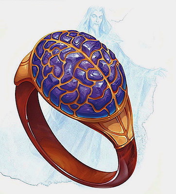 There is scant treasure to be found, but the Mind Flayer wore a magic ring. When Timador Identifies it back on the ship, the wizard discovers it to be a Ring of Mind Shielding. Such is useful as the wearer of the ring is immune to magic that allows another creature to read their thoughts, know their alignment, know their creature type, or know if they are lying. It also prevents the wearer from being communicated with telepathically, unless the wearer allows it. Perhaps most intriguing, the ring also captures the wearer’s soul if they die while wearing it. So, Timador wears and attunes to the ring wisas he wishes to communicate further with the Flayer they just killed. Instead of a Mind Flayer, though, a different and smarmy voice from the ring introduces himself as Ogdium and announces that he and the elf are “going to be good friends.”